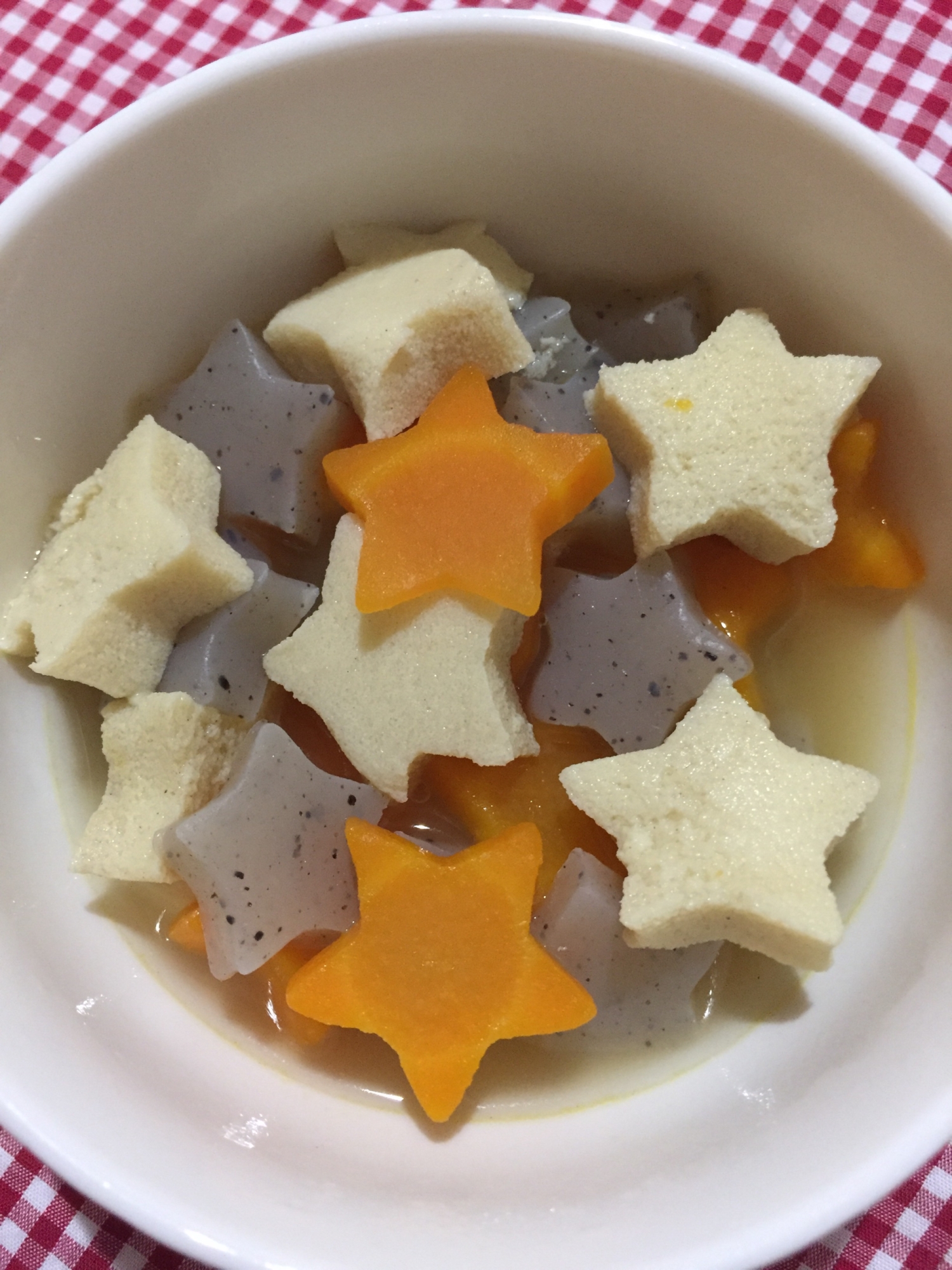 子供が喜ぶ 星型 人参こんにゃく高野豆腐の煮物 レシピ 作り方 By りらっくママ お休み中 楽天レシピ